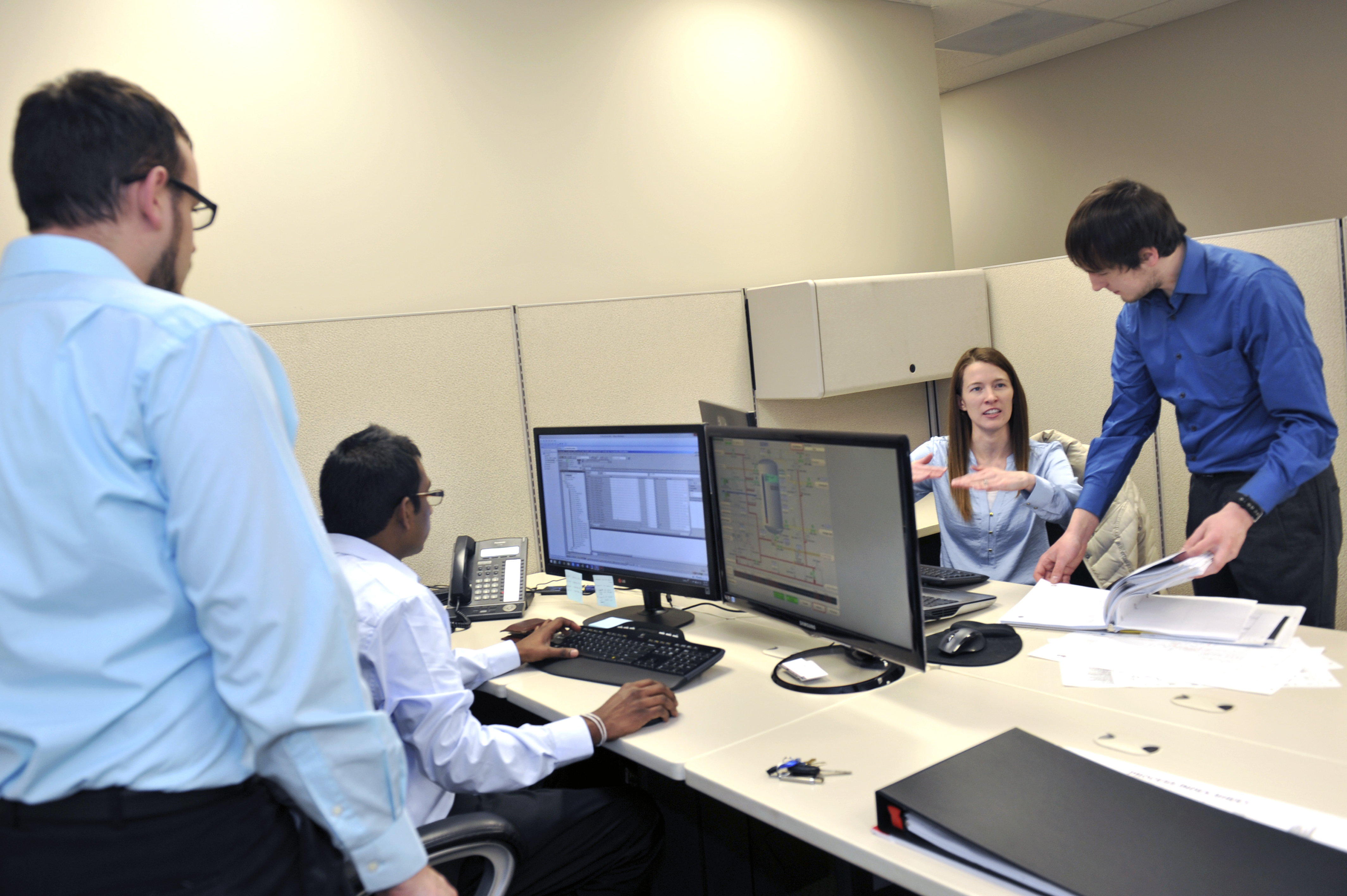 Project Engineers are responsible for the integration design of hardware and software on custom automation systems. Our engineers design the hardware/software, build the control panels, write the PLC code, develop the HMI graphics to deliver a complete system to our customers. After installation supervision, our engineers commission and start-up the system.